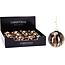 set van 12 stuks glazen kerstballen diameter: 80mm glanzend bruin met zwart en goud goudkleurig kapje en koord Lees meer.