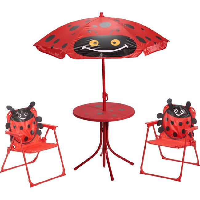 set van 2 stoelen en parasol lieveheersbeestje design max draagkracht stoeltjes: 40 kg max draagkracht tafeltje: 30 kg Lees meer.