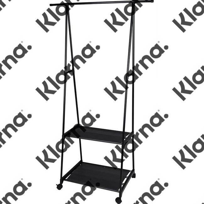 Dit kledingrek is niet alleen geschikt om kleding aan op te hangen, maar heeft daarnaast ook 2 planken waar je je schoenen kwijt kan. inclusief 2 matjes om op de planken te leggen. Dankzij de wieltjes is het rek makkelijk te verplaatsen.