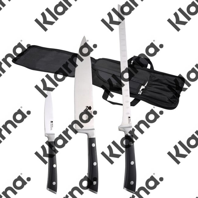 Zware roestvrijstalen kwaliteitsmessen uit de Masterpro Foodies Collectie. De drie messen kun je opbergen in de afsluitbare oproletui, extra handig is dat de messen het lemmet in afzonderlijke beschermhoezen gestoken kunnen worden.