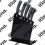 Deze messenset van San Ignacio is uitgevoerd in een stoere zwarte finish en wordt geleverd met een elegante acryl standaard.