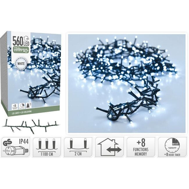 Kerstverlichting van 11 meter met 560 LED lampjes, geschikt voor een kerstboom van 180 cm, voor binnen en buiten gebruik 560 led's wit, koelwit 8 lichtfuncties: 1.Combination, 2. In waves, 3.S... Lees meer.