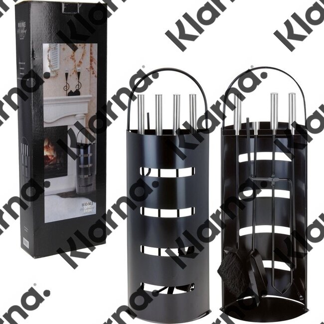 Prachtige en solide uitgevoerde openhaardset, vervaardigd van zwart RVS metaal Deze set bestaat uit een standaard, veger, tang, ...