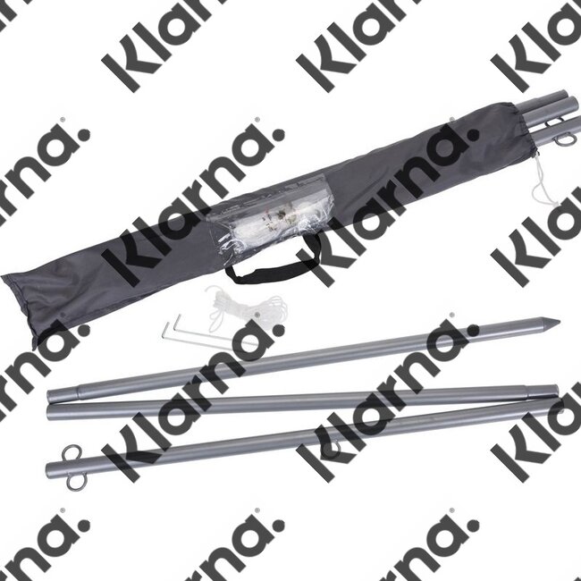 De metalen stok is 220cm en bestaat uit 3 delen (aan elkaar verbonden)
