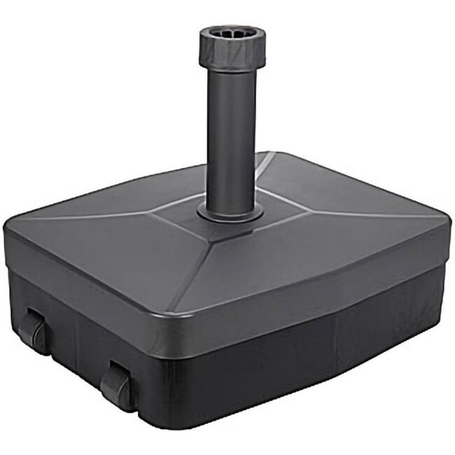 Compacte en stabiele vulbare kunststof parasolvoet Met wielen en handgreep Geschikt voor parasolstokken van 21 mm tot 54 mm Geschikt voor parasolmaat: max 300 cm De parasolstok kun je vastdraai...