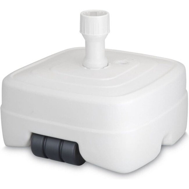 materiaal: kunststof capaciteit: 45 liter verrijdbaar geschikt voor parasols met stokdikte van 33 tot 50 mm afmeting parasolstandaard: ca 47 x 47 cm hoogte van de basis: 24 cm kleur: wit