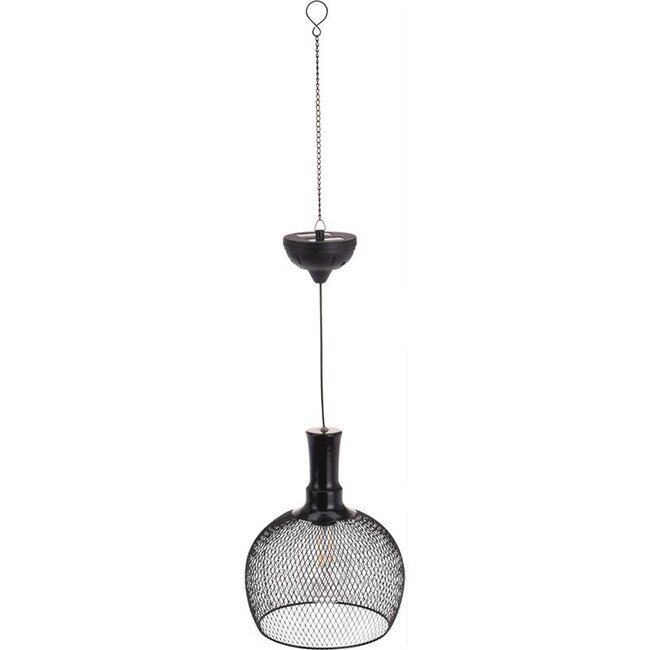 diameter hanglamp: 18 cm lengte snoer + ketting: 45 cm met 1x LED Filament in warm witte kleur inclusief 1x 1.2V AA oplaadbare batterij met 2 zonnepanelen, deze zit bovenop de hangknop in het m...