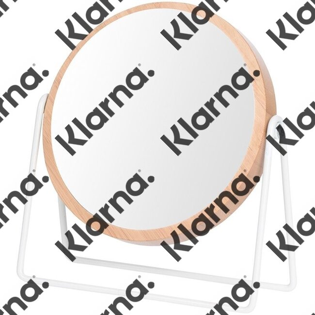 Deze tweezijdige make-up spiegel is aan de ene zijde een normale spiegel en aan de andere zijde 3x vergrotend. Perfect voor bij het opmaken of voor bij het scheren. Het frame is van metaal en de spiegel heeft een stijlvolle bamboe rand.