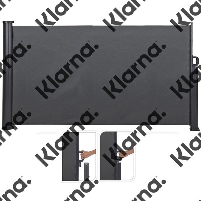 Dit oprolbare terrasscherm biedt je privacy en bescherming tegen de wind. Het frame is van aluminium en het polyester doek is voorzien van een wateraf... Lees meer.